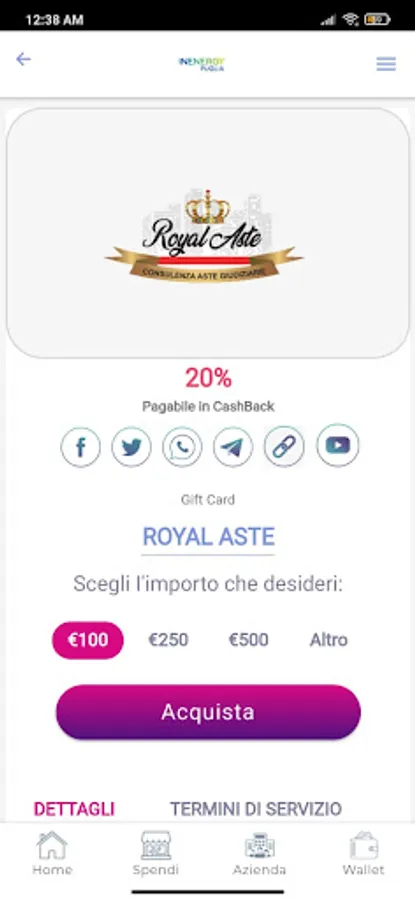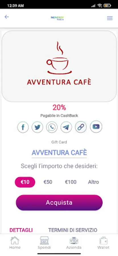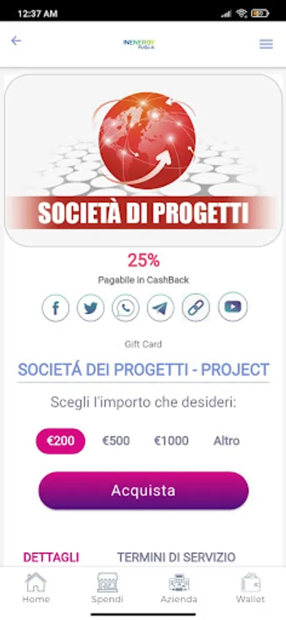 The software offers each company the opportunity to publish products and promotions on its marketplace and to become part of the main CashbackConInenergy Marketplace whose products are sponsored and published on the personal social networks of each of our promoters and influencers. The system is based on word of mouth which allows to expand the network of acquaintances, creating direct visibility for companies.