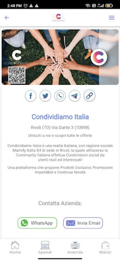 With our APP you can discover the products and companies registered on www.condividiamo.club.