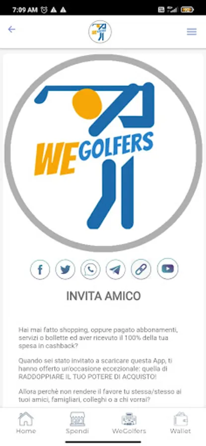 WeGolfers è una piattaforma commerciale il cui scopo principale è quello di mettere in contatto i consumatori con le aziende partecipanti al network tramite la condivisione di un contenuto multimediale che al suo interno ha un referral link che identifica e garantisce l’assegnazione delle provvigioni.