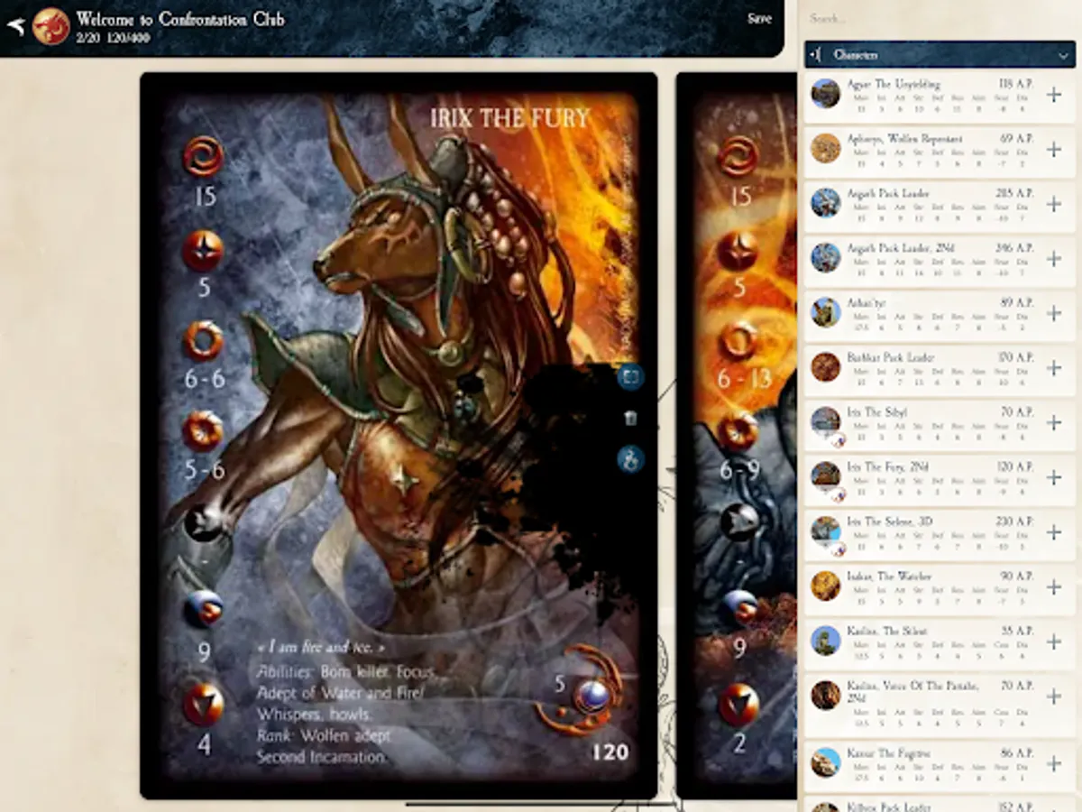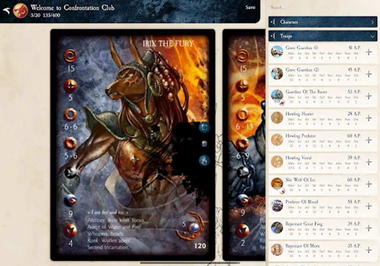• Army Creation: Confrontation Club makes army list creation a snap, by checking the more complex rules for you and filtering only the necessary spells, miracles, artefacts, special capacities and Virtues for each model.
