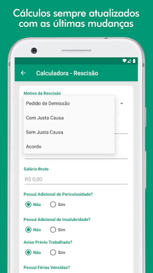 Don't waste any more time and download the Calculator Termination application now, the essential tool for all Brazilian workers!