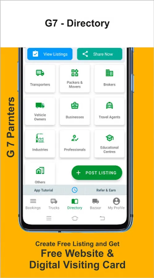 Directory: You can List Your Transport, Packers, and Movers, Truck businesses to Get bookings and Loads and Get 100 % Free Digital Visting Cards and Free Mini Website for your Own Business.