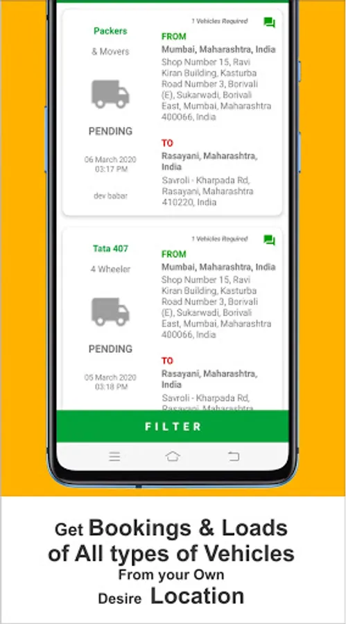 Bookings: To Get Bookings and Load Across India you can use the Booking Option which automatically arranges according to your Location. You can use filters to get booking and load Faster.