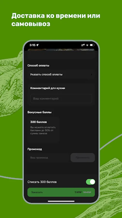 We also made sure that from each order you receive 5% cashback in the form of points, which can be spent when paying for the next order.