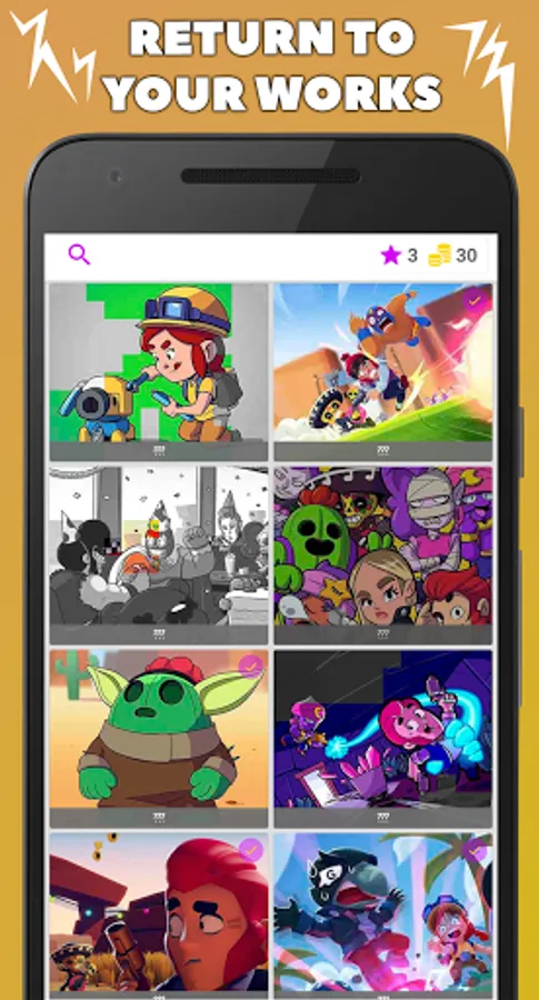 ⭐ Different levels of difficulty and the ability to go to a new job without finishing the current one. All progress is saved automatically in the "Works" section, so you can be distracted at any time and then return to the puzzle at a convenient moment.