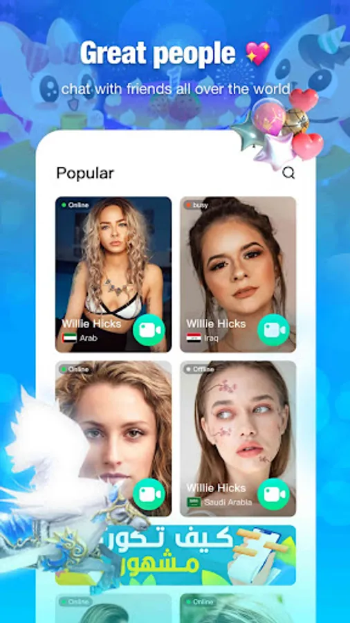 -✨1V1 video chat—connect to your opponent through face-to-face video calls;