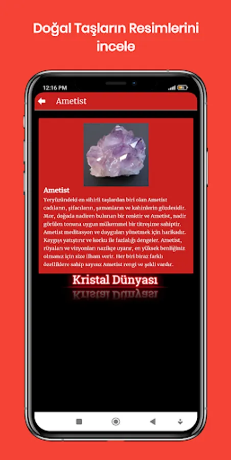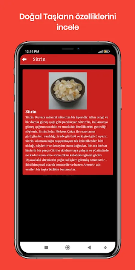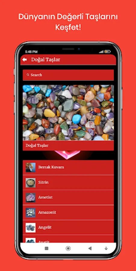 Uygulama doğal taşlar hakkındaki bilgileri verir