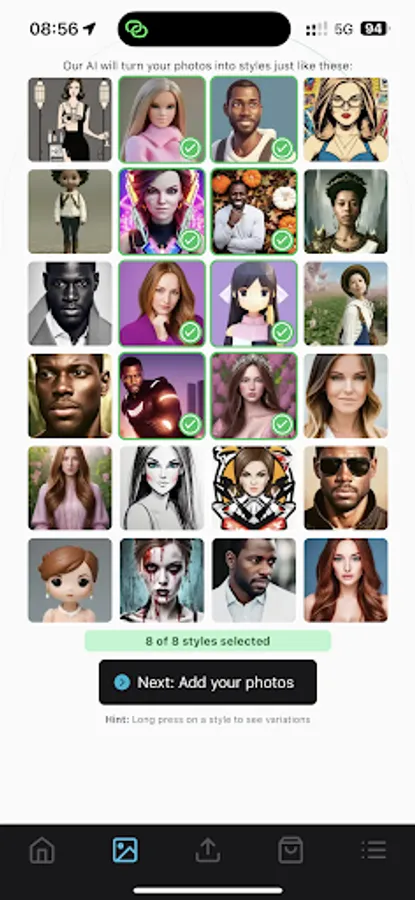 Super easy to use, just choose the styles you want, and then upload your photos of your self to get our AI to create your amazing new AI Avatars.