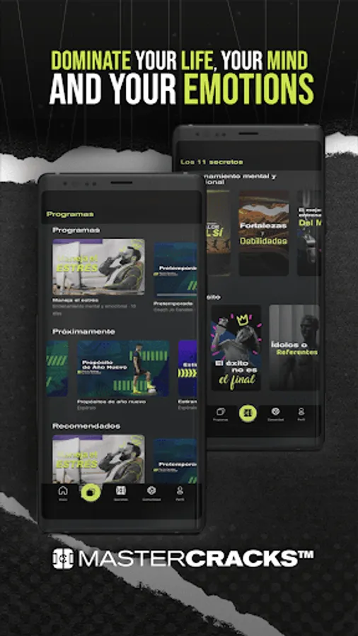 The app to start your physical, mental and financial training with your soccer idols. Through our programs, where we will take you step by step, you'll be able to become a better version of yourself. Stress management, a program to improve your rest, nutrition, leadership, are some of the aspects that you can work on every day through MasterCracks. Download the app and master your life!