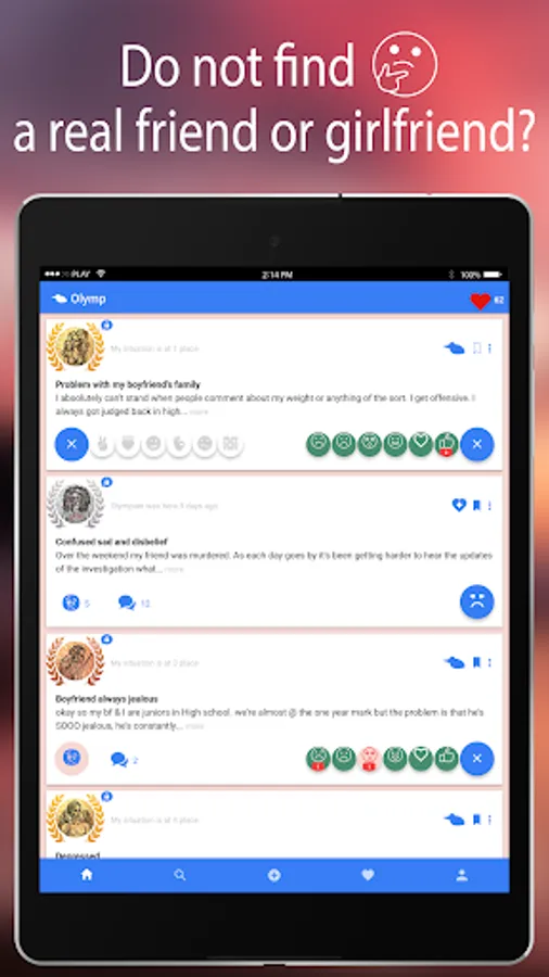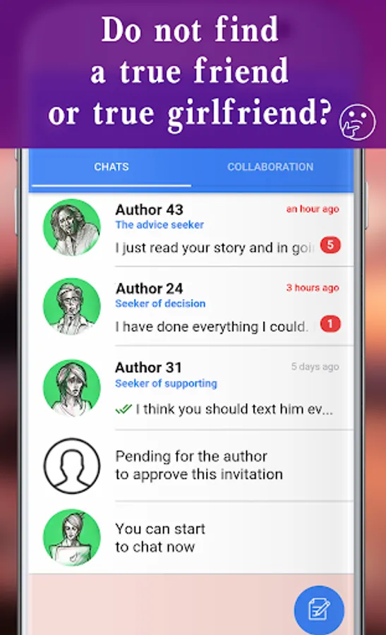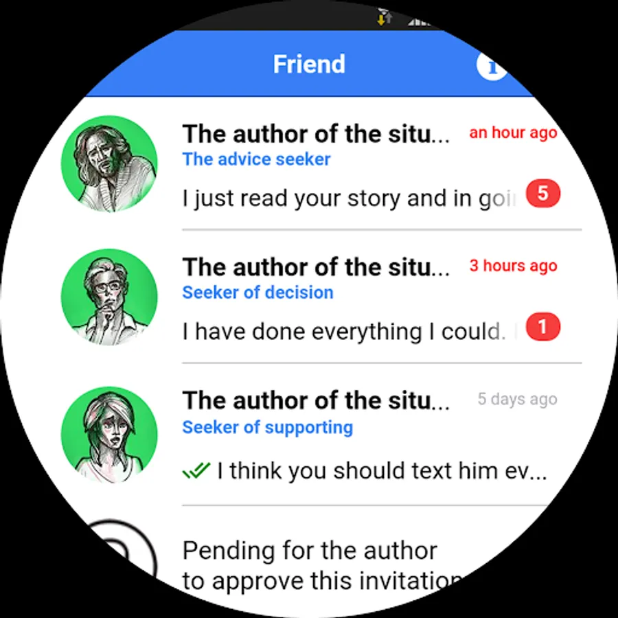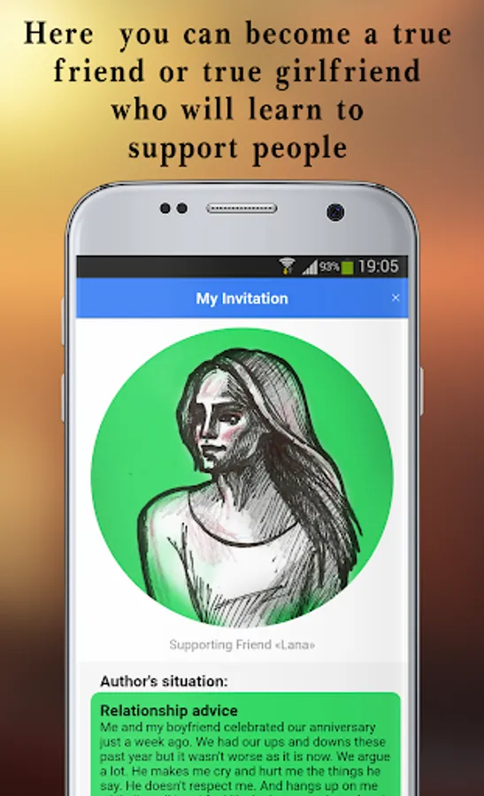 Friend is a social app that helps to improve your friend skills and to learn how to give a support to people in difficult situations. You do not need to register. All you have to do - write to people in difficult situations and try to help by your POWER of WORDS.