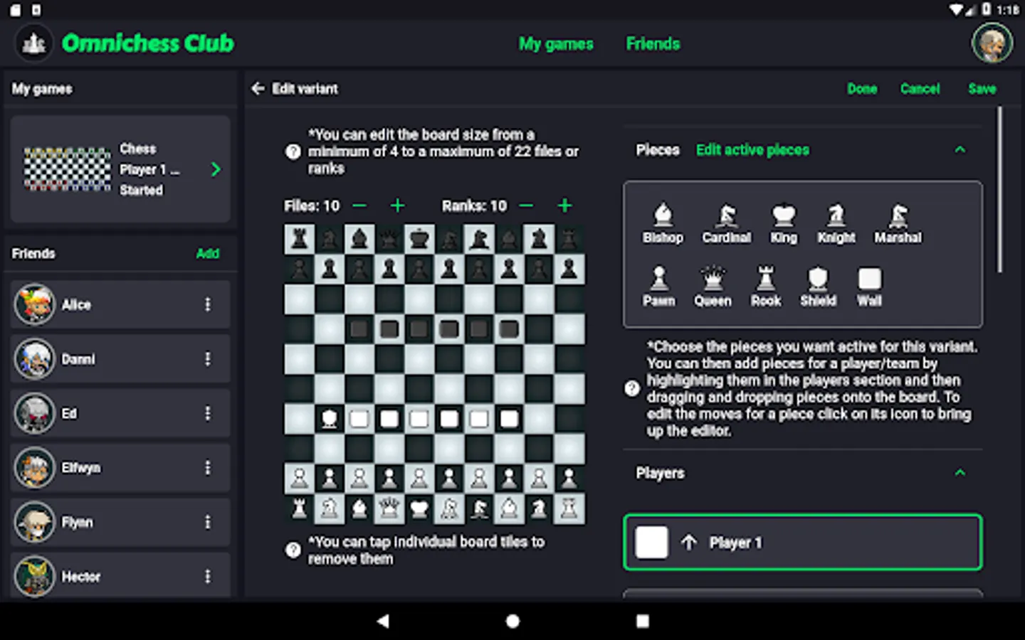 Omnichess is the game that allows you to design and play your very own chess variants! With AI and online play there are a huge variety of options including: