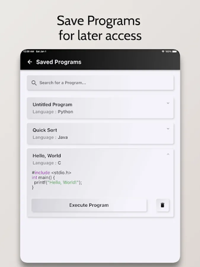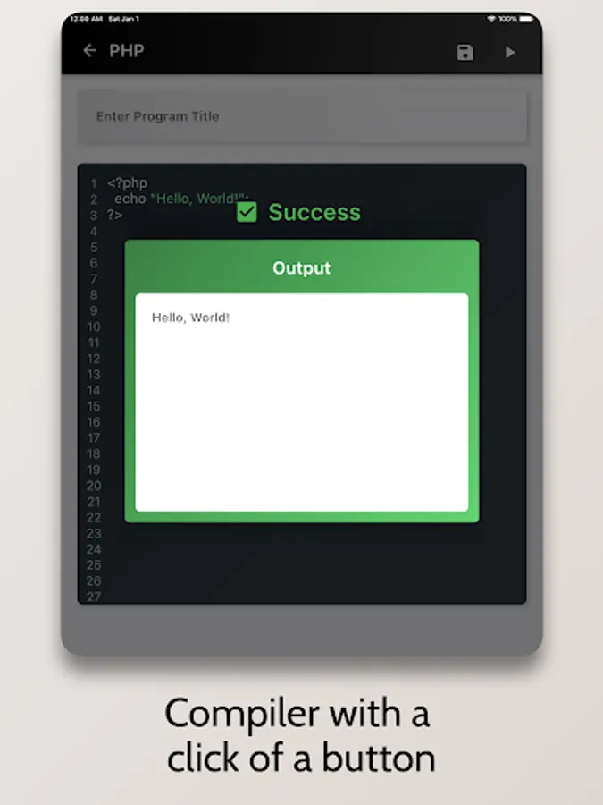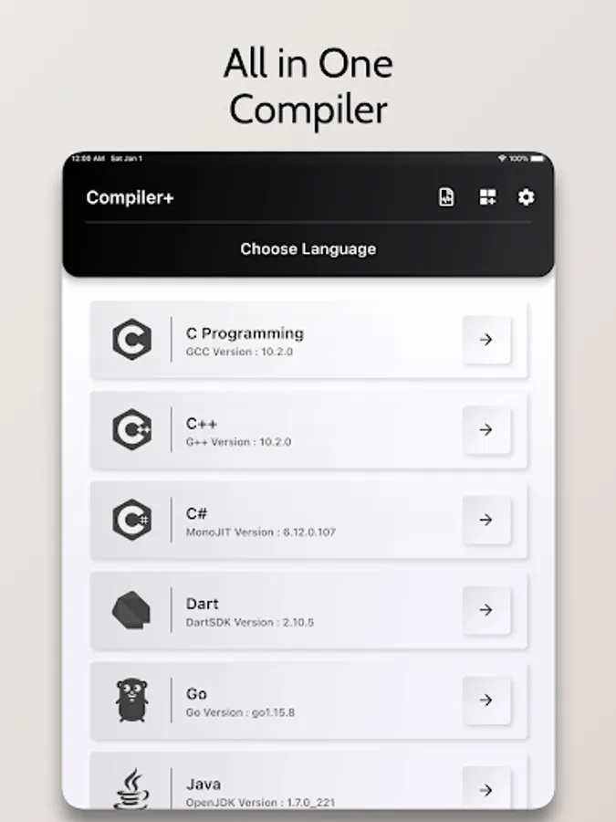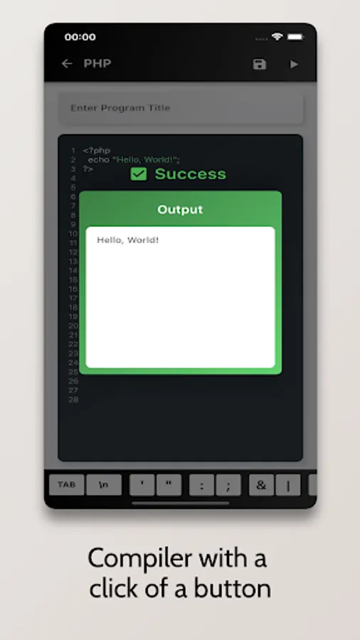 Compiler+ is an Advanced IDE for Compiling Programs written in any popular Programming Language on your Mobile Phone. It also has a sleek and interactive graphical user interface.