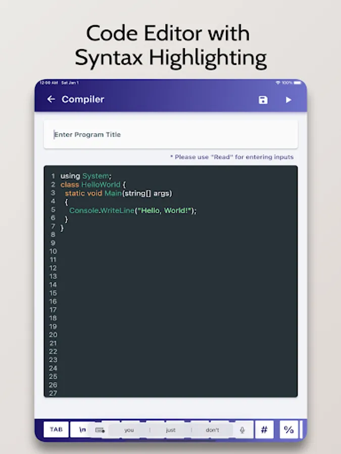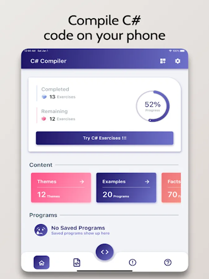 C# Compiler is an Advanced IDE enabling you to compile C# Programs on your Mobile Phone for Free. It comes with a code editor with in-built syntax highlighting capabilities.