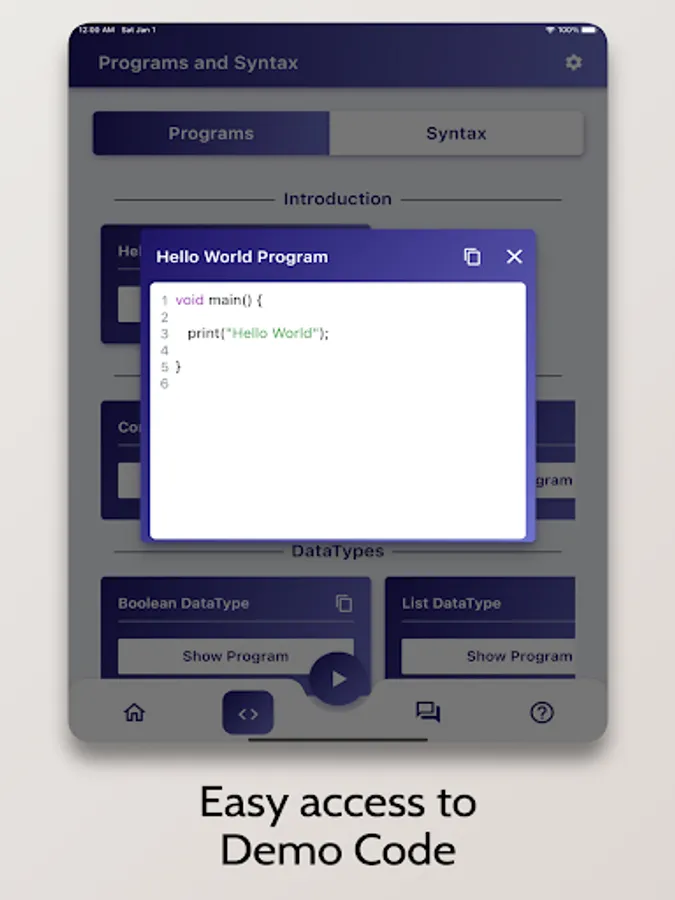 - Demo Programs with examples to help you visualize what you've learned.