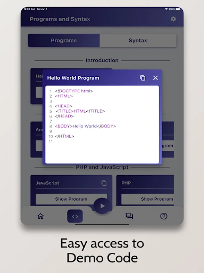 - Syntax of all the programs is presented in an ordered manner.