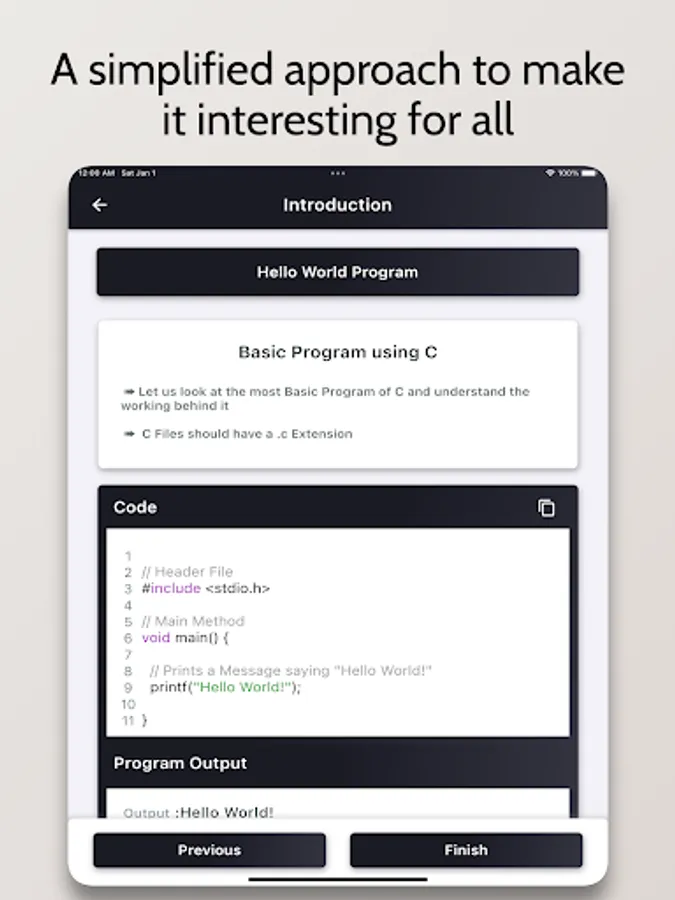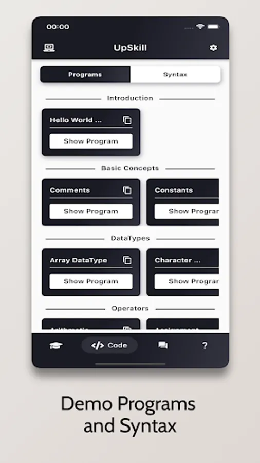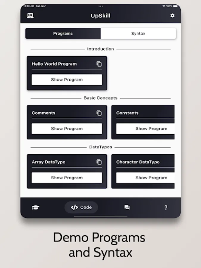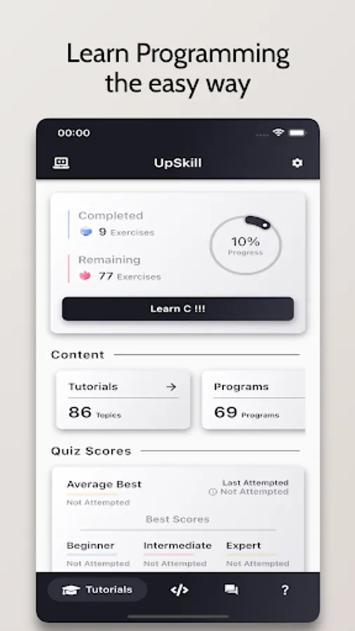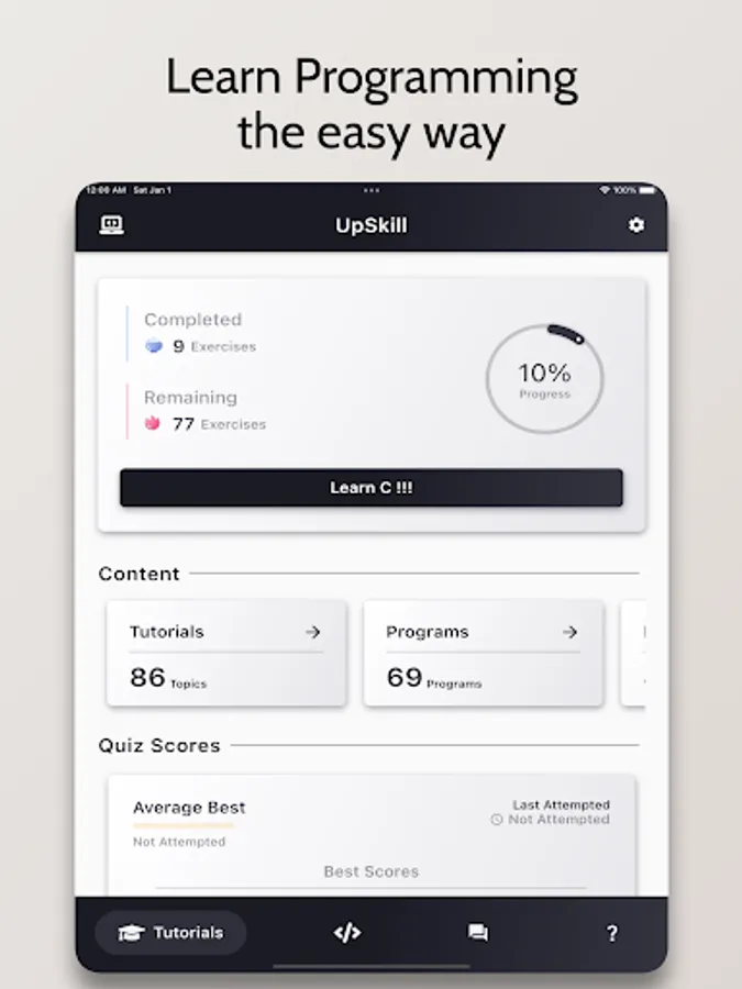 Whether you want to learn Programming as a Hobby, for School/College, or want to build a Career in the field of Software Engineering, this Tutorial suits your needs. UpSkill Tutorial covers everything from the Basics of Programming to Advanced Concepts like Data Structures. It also comes with a sleek and interactive graphical user interface.