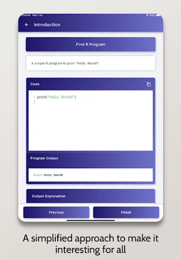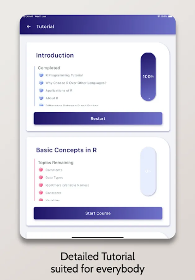 Whether you're learning R Programming as a hobby, for school/college, or to build a career, this tutorial has you covered! It takes you from basics to advanced concepts like data structures — all with a sleek, interactive interface.