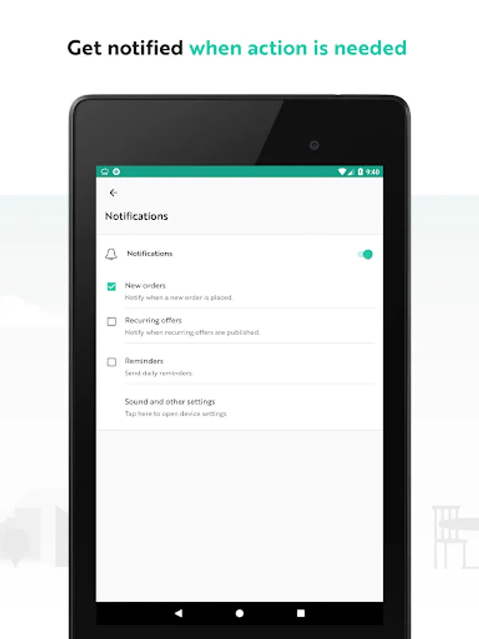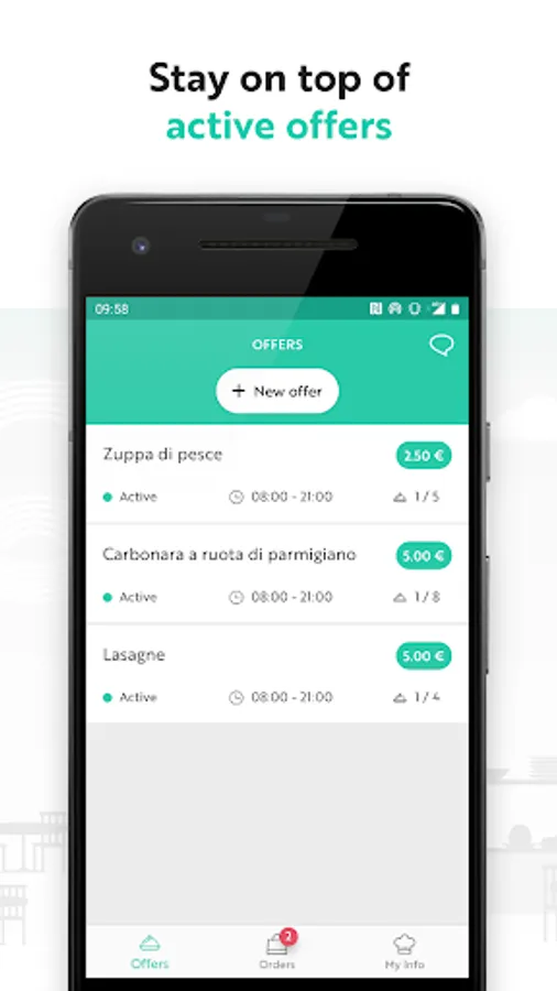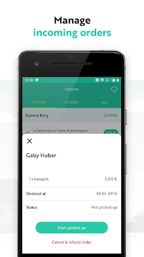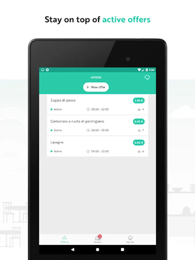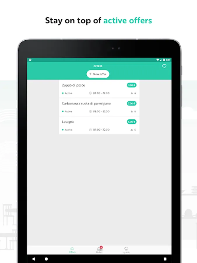 Once you have published the offers, customers can find them by using our mobile and web apps. Whenever a purchase is made, your orders list is updated and you receive a notification (if you want) straight to your device.