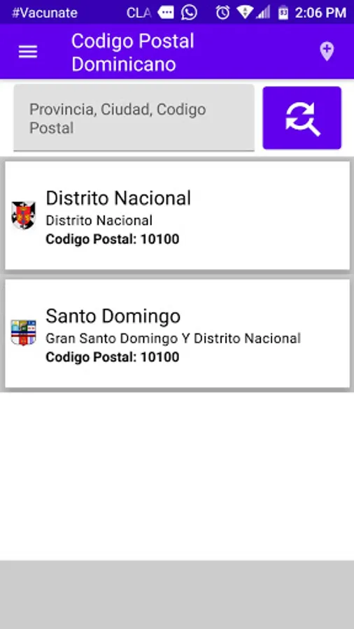 Our application offers you a list with the postal codes of the Dominican Republic, you can search by province, city, municipality or sector (Not all sectors are registered).