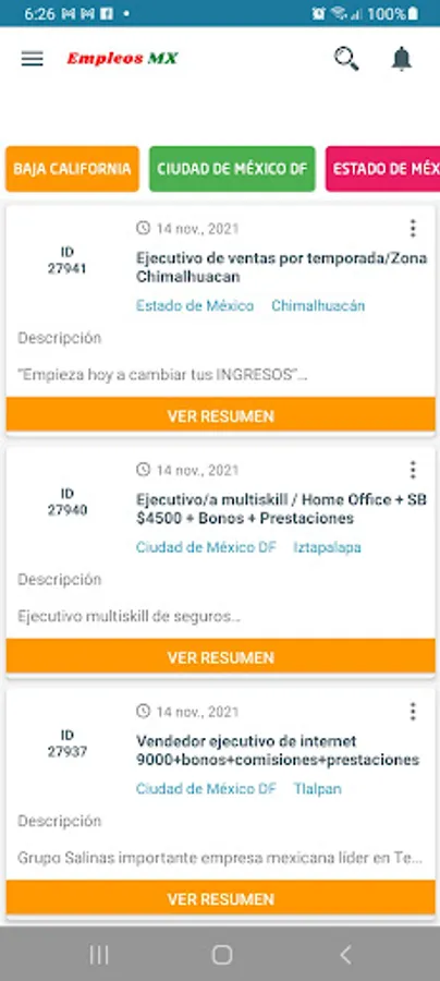 Find job offers throughout Mexico, look at the list of Mexican companies that are looking for staff to fill a vacancy. Our application provides you with the tools that will help you achieve your work goals.