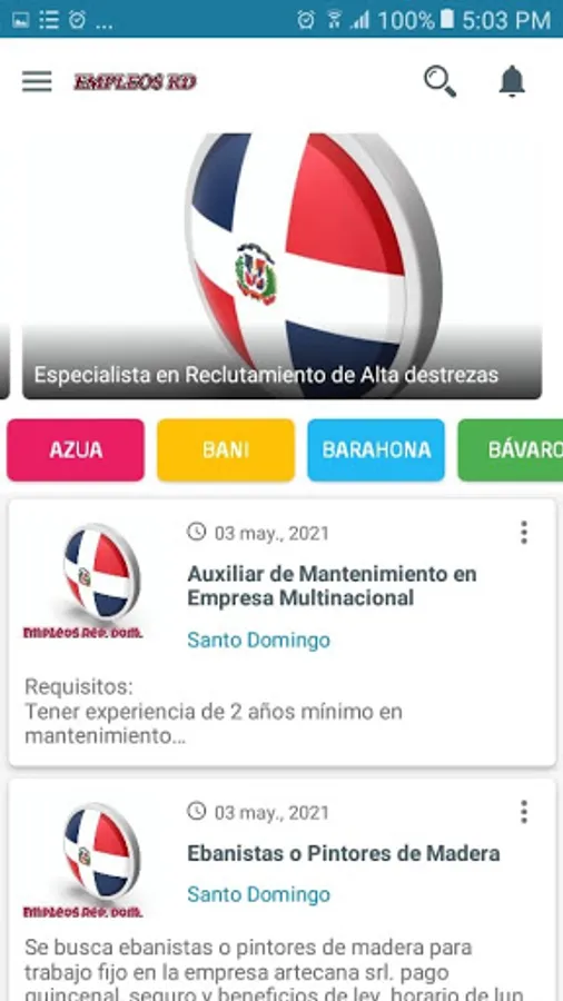 Find job offers in the Dominican Republic, look at the list of companies in the Dominican Republic that are looking for personnel to fill a vacancy. Our application provides you with the tools that will help you achieve your work goals.