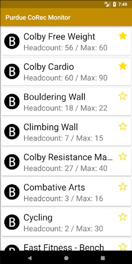Purdue CoRec Monitor provides the ideal interface for checking activity levels within the various facilities provided by the France A. Cordova Recreational Sports Center at Purdue University. Plan your workouts and avoid having to wait for openings within the CoRec's facilities by either checking recent activity or long-term trends.