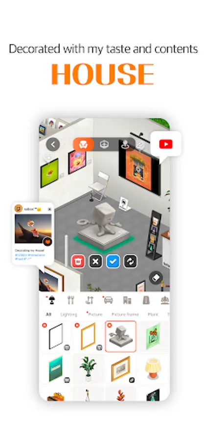 - You can decorate your House with the photos you like, memorable stories, and your favorite video clips.