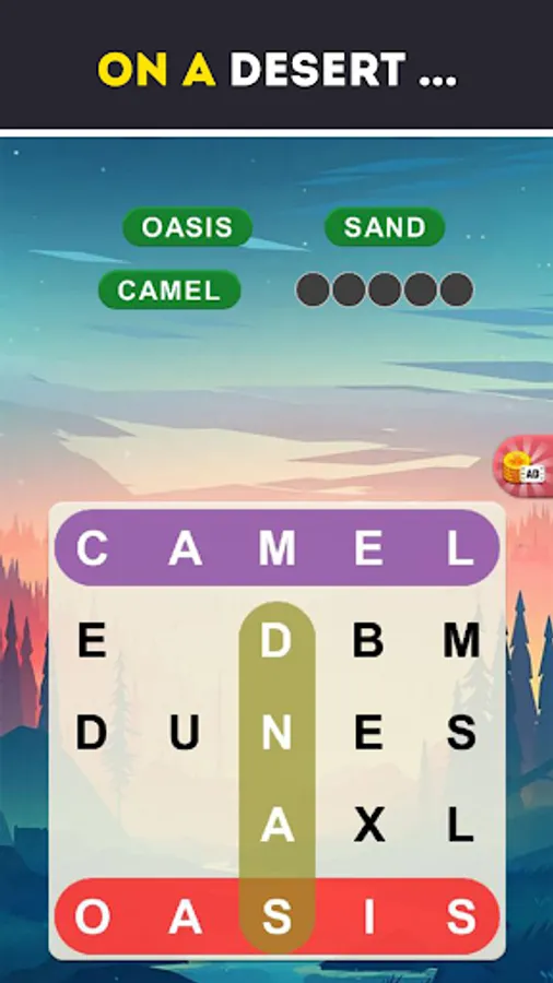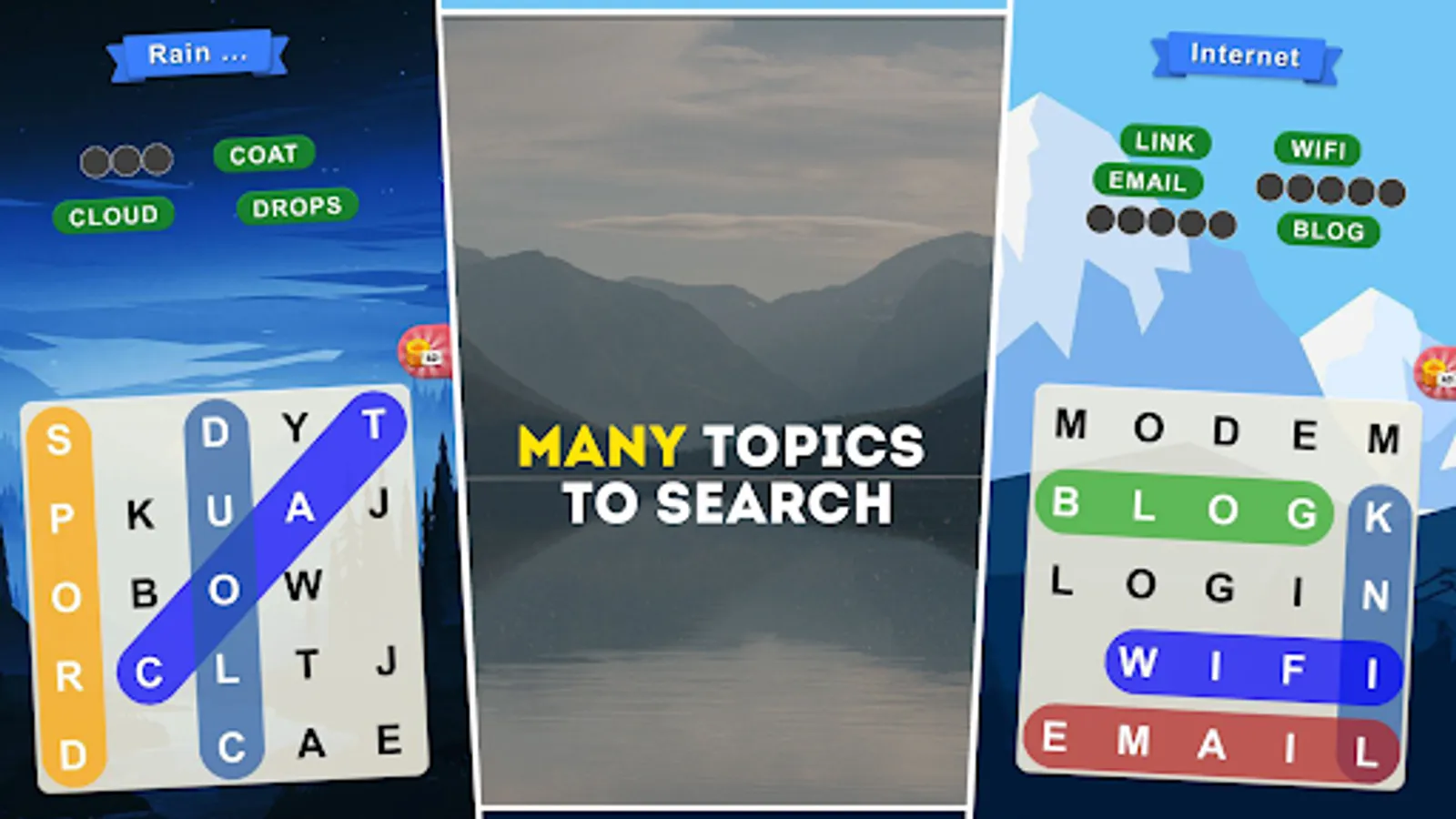 Do you know where the hidden words are? You should try our game: Word Search. This is a word game where you can test your word knowledge and have an exciting word hunt. This game is designed to train your brain and improve your vocabulary. You will definitely like this puzzle game!
