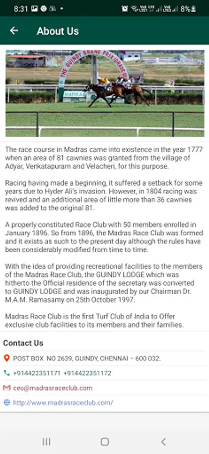 Madras Race Club is the first Turf Club of India to Offer exclusive club facilities to its members and their families.