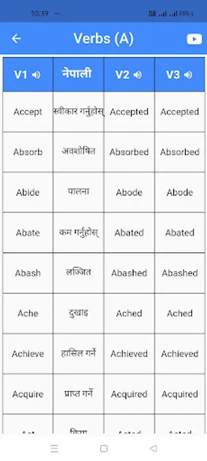 To help you develop a strong foundation in English grammar, we have included a comprehensive list of 1300+ English verbs. With detailed definitions and examples, you can expand your vocabulary and enhance your ability to construct sentences with ease.