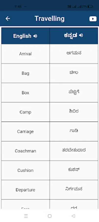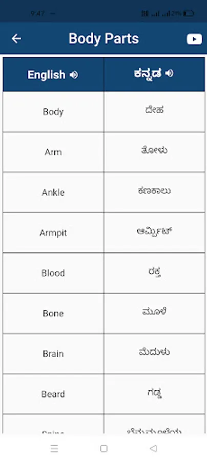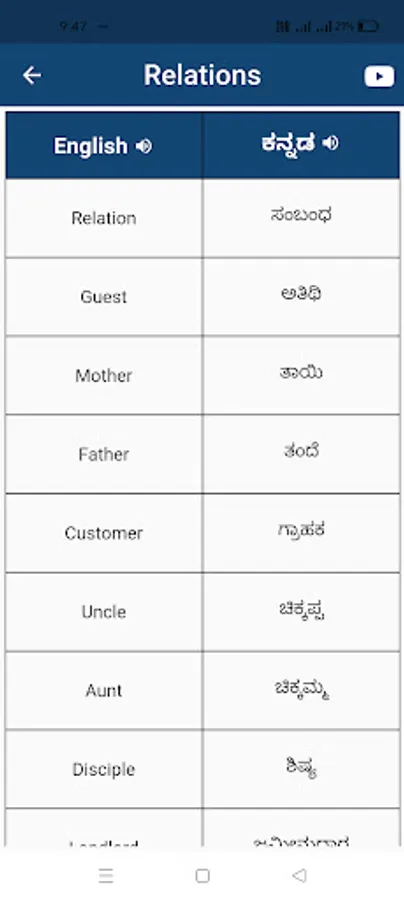 This app provides List of common and daily use English words in Kannada. Learn English with thousands of most common daily use English words with Kannada meaning.