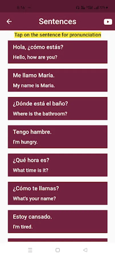 Our Spanish to English Sentence App is available for Android devices, making it accessible to a wide range of users. Whether you're on the go, studying at home, or exploring a Spanish-speaking country, you'll always have a reliable language companion in the palm of your hand.