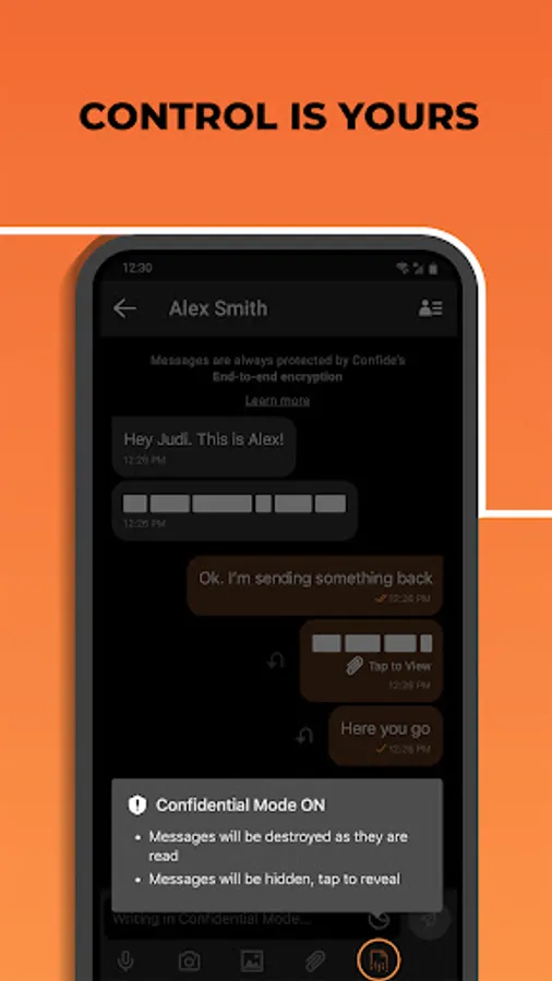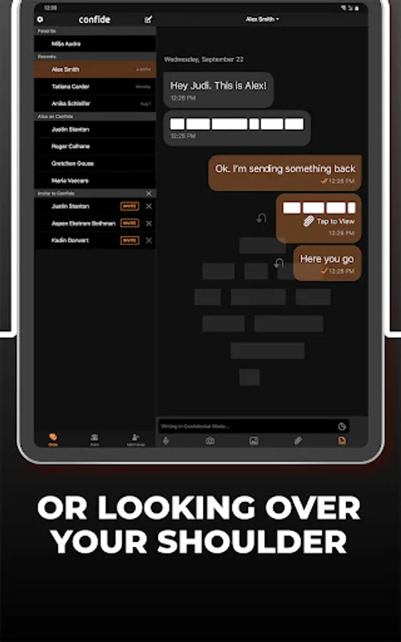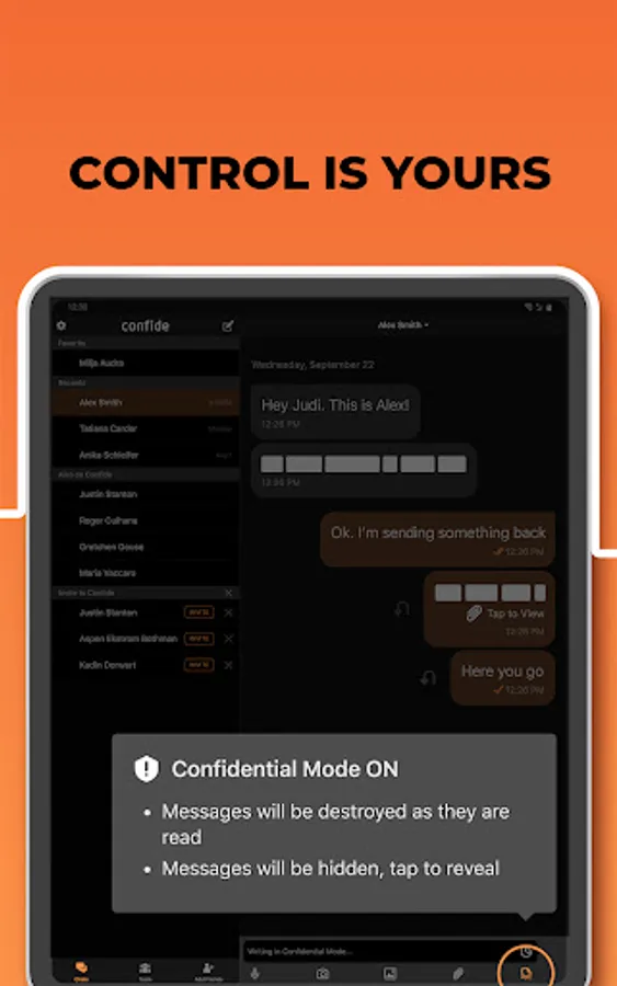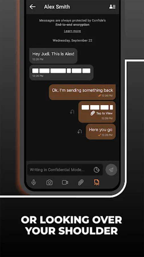 Confide allows you to communicate digitally with the same level of privacy and security as the spoken word. Encrypted private messaging lets you secure chat and send private texts with complete confidence that they’ll stay private.
