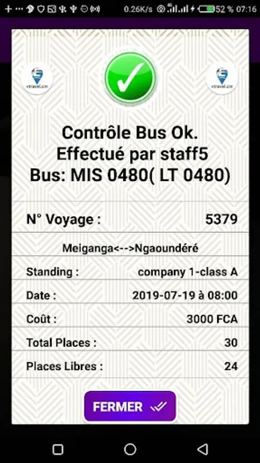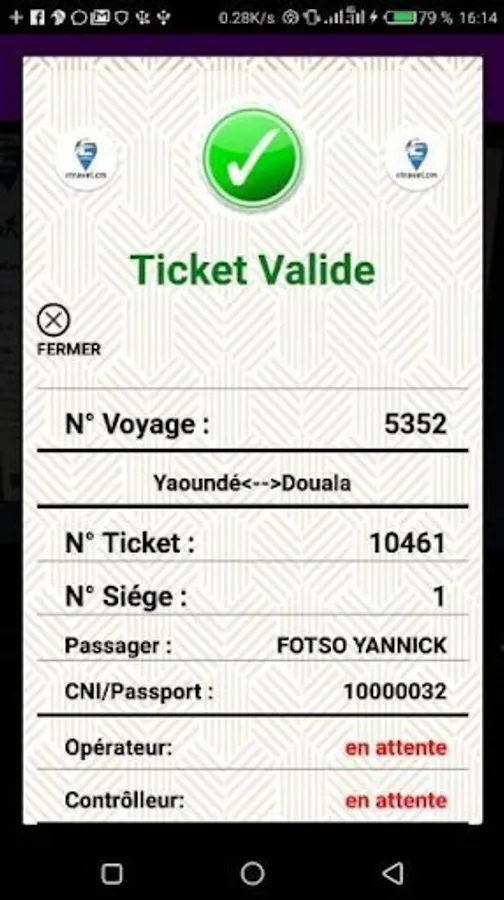 - Valider les tickets de voyages achetés depuis le site web etravel.cm,