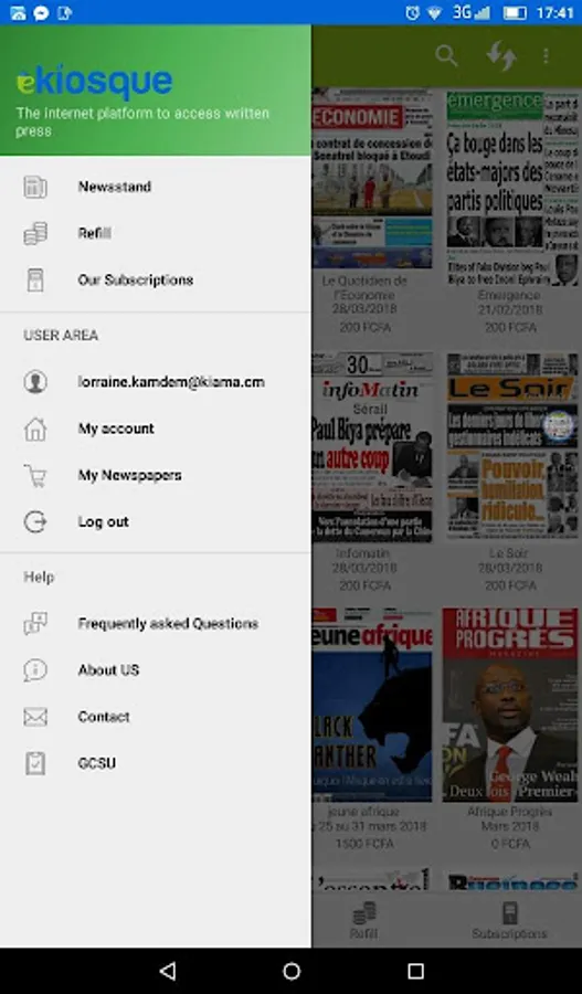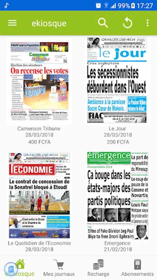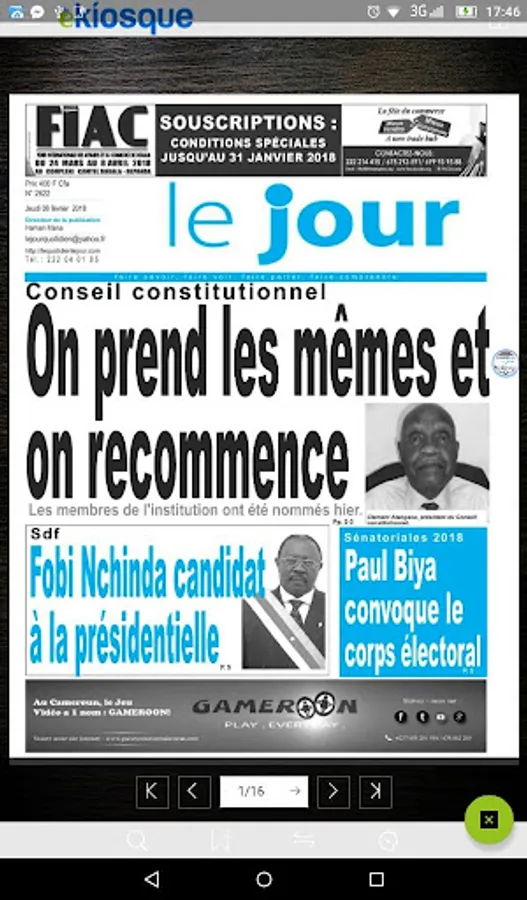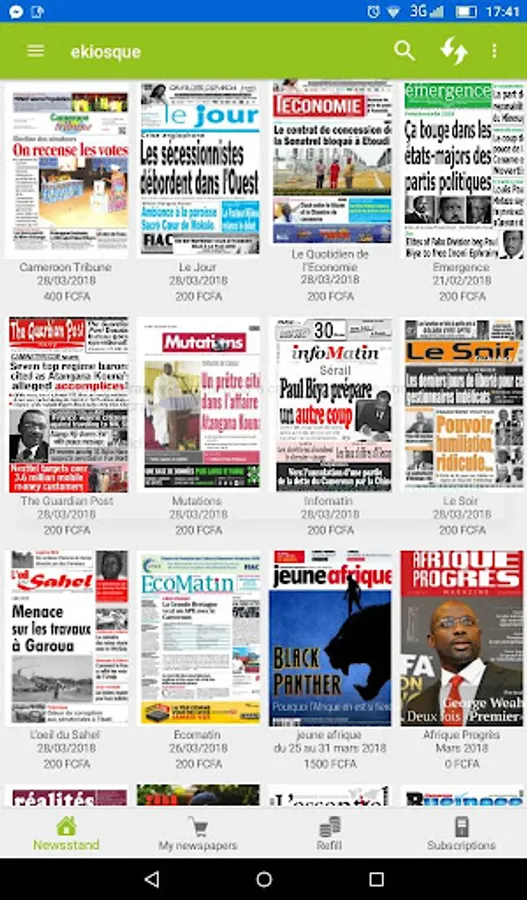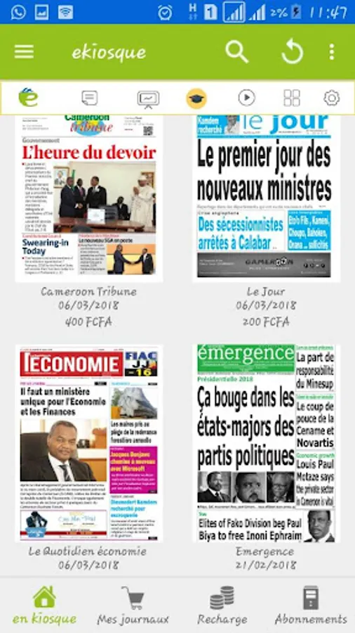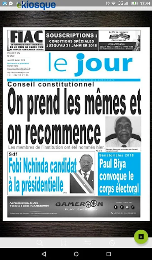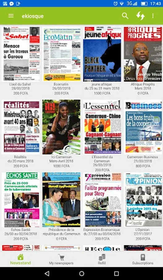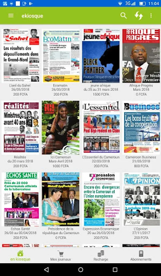 Inform yourself anytime and everywhere at 200 Fcfa. Enjoy the best of the press on ekiosque.