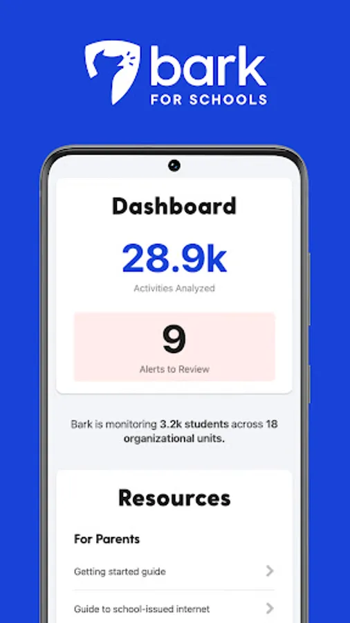 Download the Bark for Schools app to manage settings and access alerts from your mobile device.