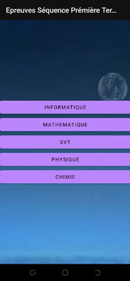 Cette application va permettre aux élèves de la classe de la Première et Terminal de traiter une multitudes d'épreuves pour se perfectionner à affronter leurs examens de séquence.