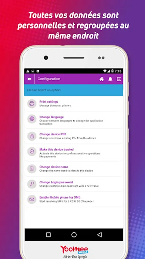 The All In One application also allows you to buy your call credit, SMS, and also your Yoomee internet data plan. It is much more than an electronic wallet that has been set up to make your life easy.