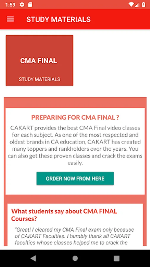 What do I get in the CMA Final Vedx Mobile App?
