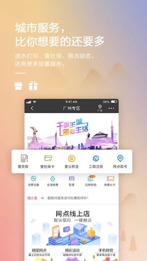 ● City service. In the same city as China Merchants Bank, the service is more than you want. Check social security, meal tickets 50% off, movie coupons, subway discounts, self-service tax payment, online water printing, etc., and more surprises.