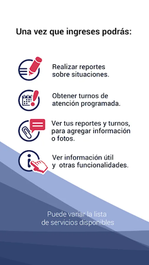 App of citizen attention of the Municipality of Salta, Argentina. It allows citizens to carry out various procedures, from georeferenced attention reports*, such as without it*, scheduled attention shifts*, personal*, urban and vehicle records*, as well as useful information and to receive scheduled notifications about status changes and comments of the organization with the citizen, among other functionalities.