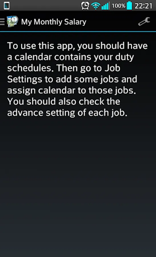 You need to have a calendar contains duty schedules and assign it to a job in the app. The app will calculate the working hours and salaries. You can also assign the day which the monthly timesheet be submitted. The notification will remind you at 9am on the assigned day every month. The app will also record the monthly job hours and store it into local database every first day of the month. The stored report cannot be modified.