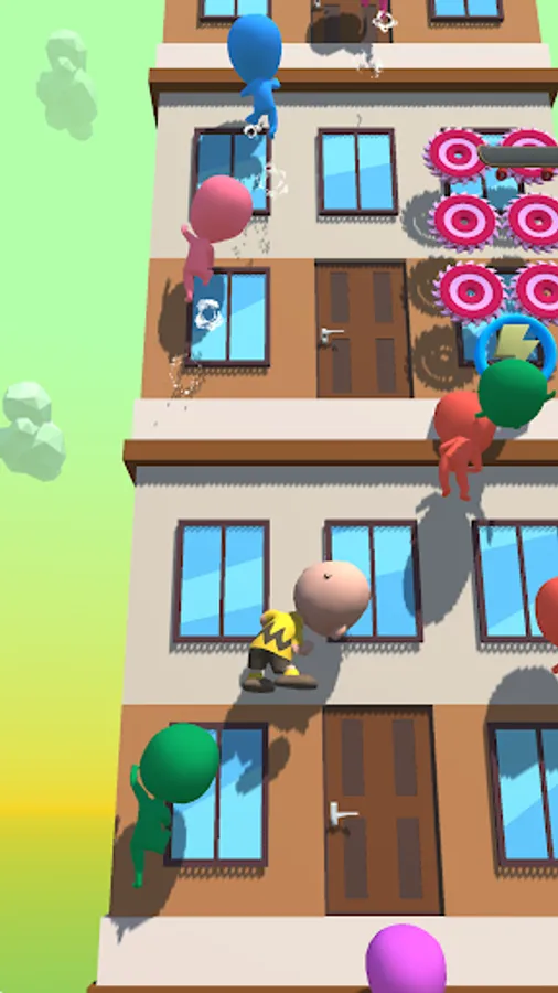 ◉Pick up elevators, skateboards and other skills to reach the top of the building as quickly as possible.
