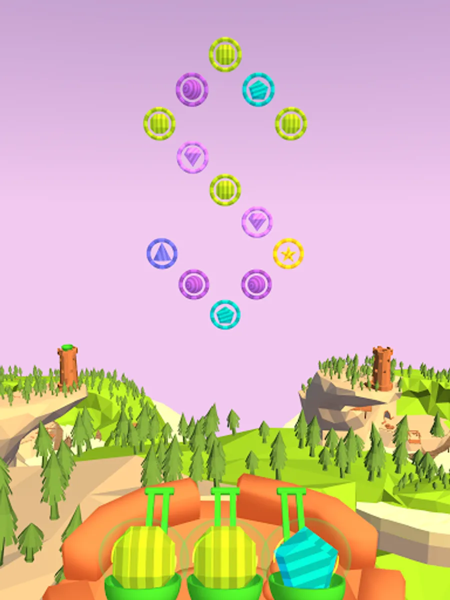 ◉The three catapults are filled with polyhedral missiles. Tap the one that is the same as the target, and it will automatically launch and track the target.