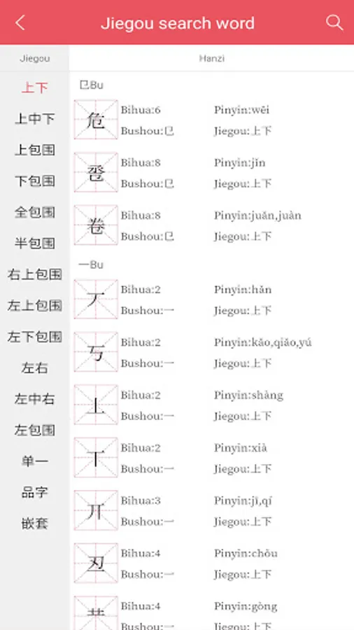 7. Quick search: Pinyin search, radical search, stroke search, structure search and other search methods, easy to operate.