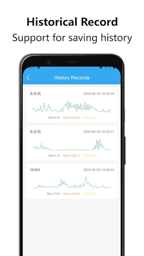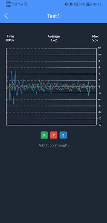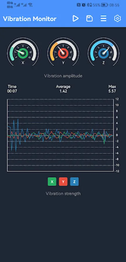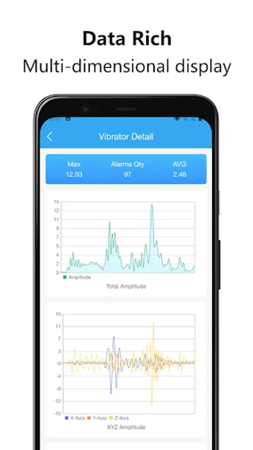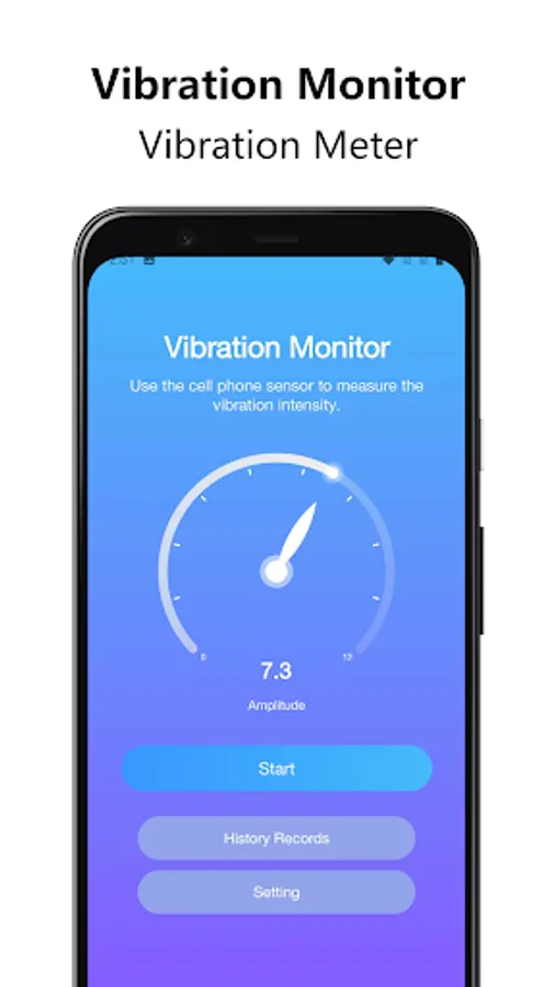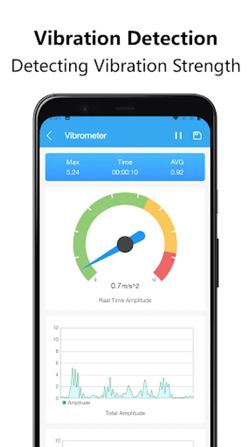 The application provides the ability to set vibration amplitude alarms, and the phone will sound an alarm when a specified vibration intensity is reached.