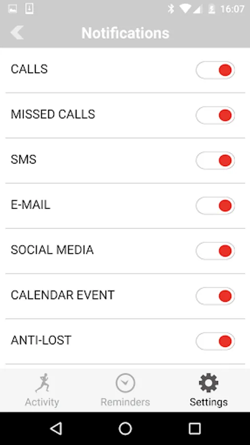 Once you have paired your Aviator Smartwatch with the App, this will allow you to get your daily activity including; steps, distance walked, burnt calories and sleep quality displayed & graphed onto your phone. You will also be able to configure the phone notifications to display your calls, SMS, emails and social media.