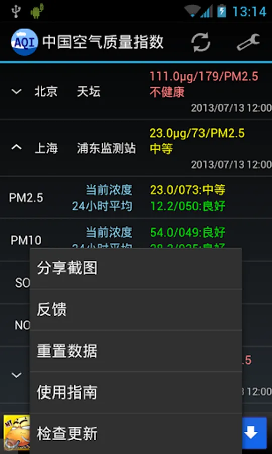 App and widget providing detailed air quality data of over 190 cities in China. Also include US Consulate data of Shanghai/Beijing/Guangzhou/Chengdu.