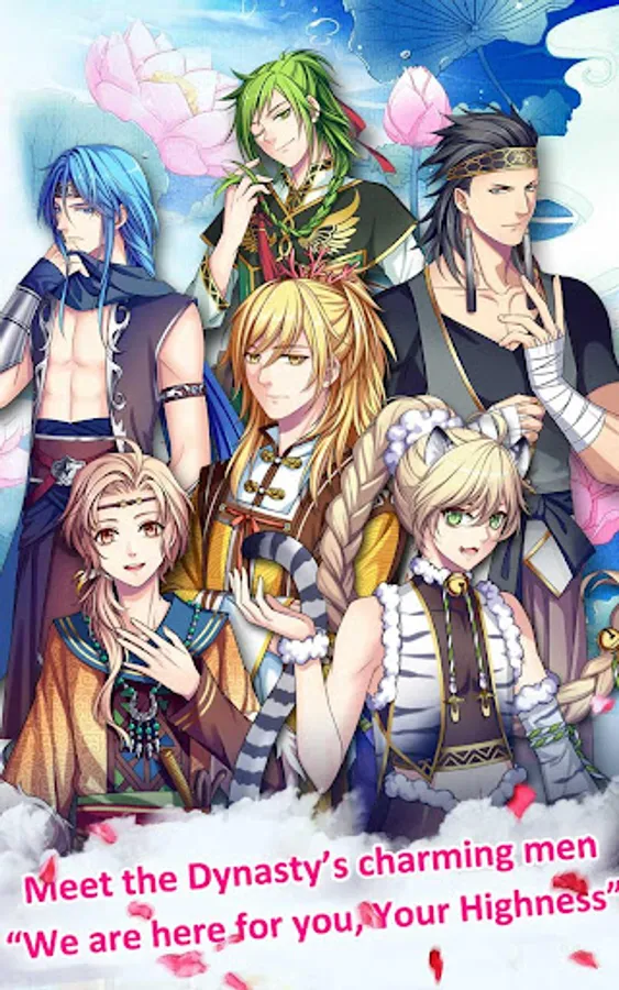As the royal princess of the Southern Dynasty, you are faced with the biggest turmoil of your homeland. With the loyal support of Kirin and Lancelot, you will set out an adventurous expedition to defeat the enemies and restore peace within your homeland. Along the journey you will become acquainted with many other charming male characters who will devote to you their selfless and unconditional love.