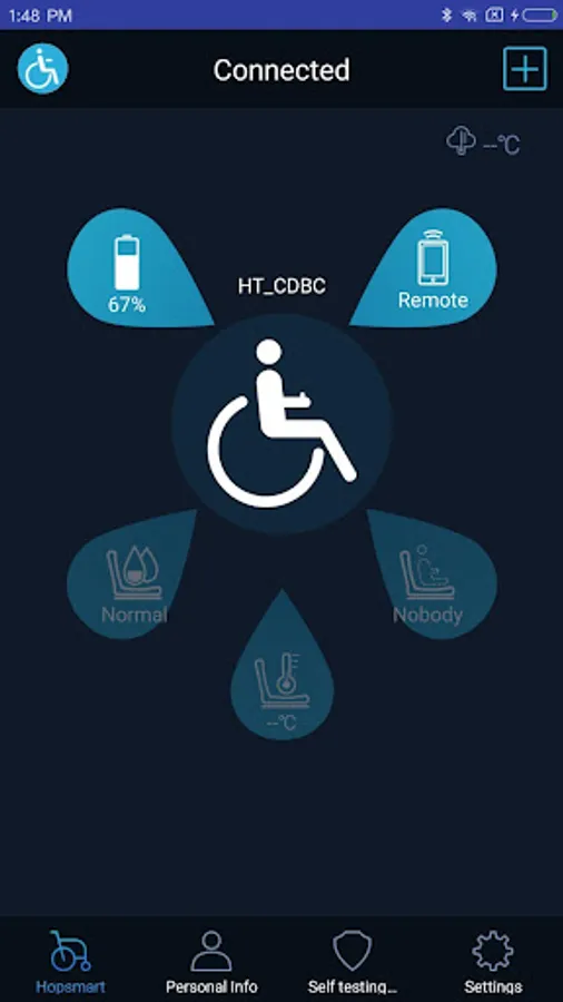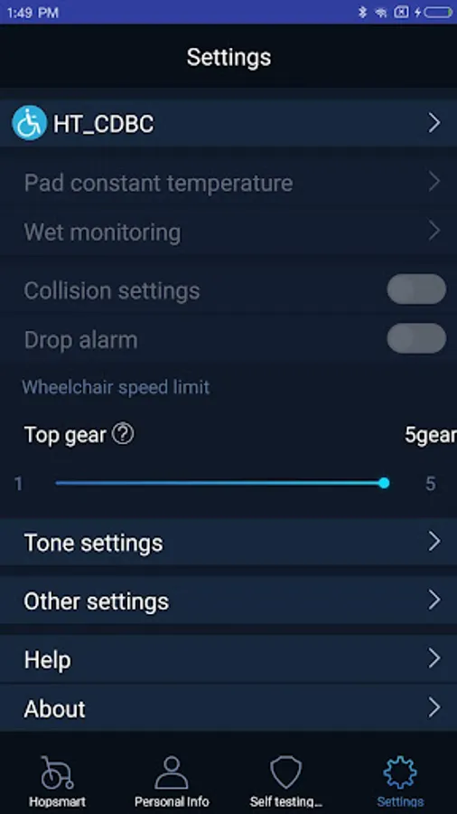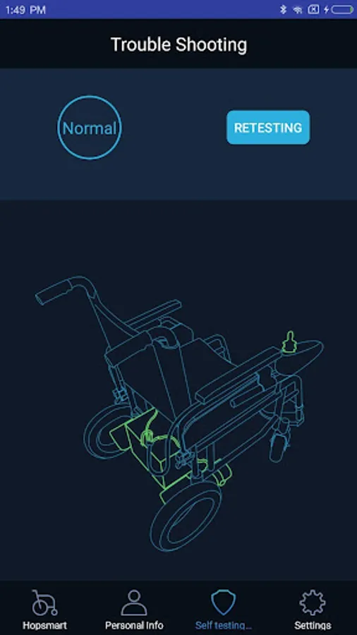 The Hopsmart app was created for a powerful electric wheelchair controller, it should co-working together with the controller via Bluetooth connection between controller and mobile phone or tablet which installed the app. The Hopsmart app also included a lot of great functions, with the controller paired successful, app can help user make a self testing to find the wheelchair abnormal status in order to ensure the electric wheelchair always safety and self testing processing with a beautiful animation. It can let user set up his/her medical card for any others who can provide helping. By App, user can use their cell phone or tablet as a remote controller to control the wheelchair, the available distance around 15 to 20 meters. This will help user training themselves to handle simply action in their life and set up their confidence. By Hopstech, user can set up and modify their password to ensure others Hopsmart app that installed in other devices can’t pair with user’s wheelchair. Freely turn on and off the reverse tone sound to match different environment. The App also can let user restore the electric wheelchair back to settings during in manufactory.